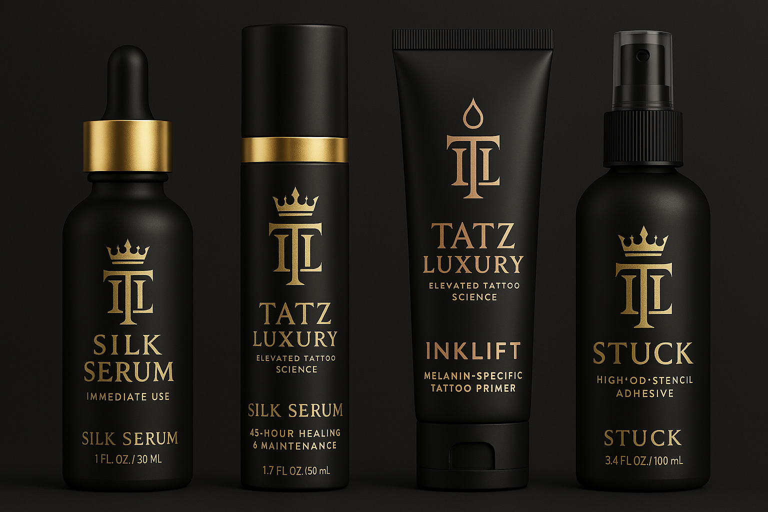 Engineered for excellence, our line of tattoo aftercare and studio essentials reflects the same dedication to innovation and precision that defines our art. Every formula is developed with intent- created to protect, enhance, and preserve your masterpiece. While our product line remains under wraps until launch, know that what’s coming is the future of tattoo luxury.